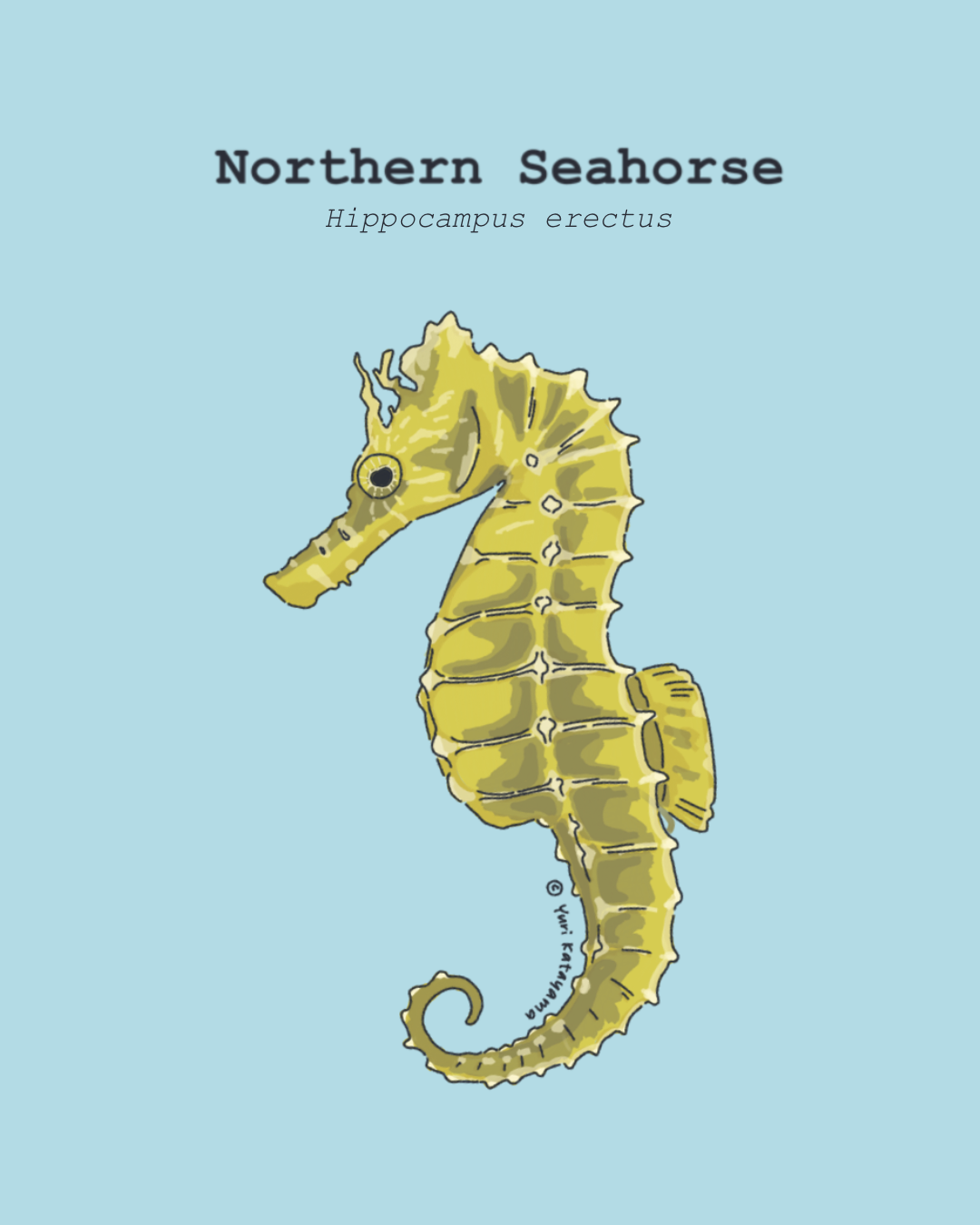 Northern seahorse illustration by Yuri Katayama, a student at The University of British Columbia, Canada.